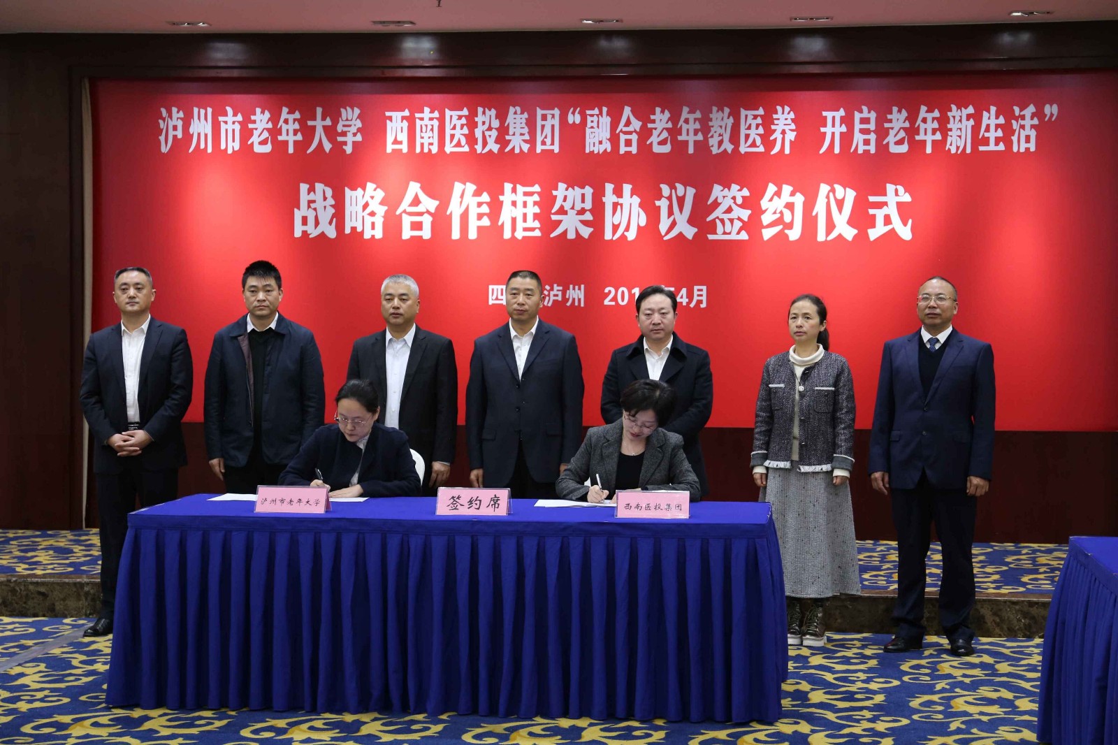 4月3日,西南醫(yī)投集團與瀘州市老年大學在南苑賓館舉行“融合老年教醫(yī)養(yǎng) 開啟老年新生活”戰(zhàn)略合作框架協(xié)議簽約儀式。市政府副市長薛學深出席簽約儀式,市民政局、市老齡辦領導參加。市政府副秘書長佘克明主持。