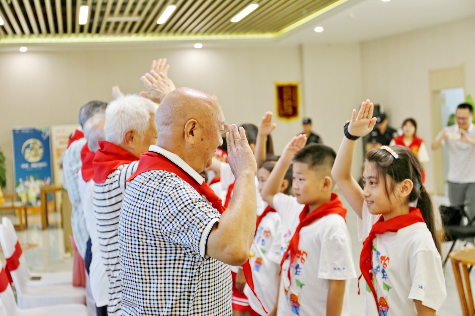活動(dòng)現(xiàn)場(chǎng),7名少先隊(duì)員向7名80歲以上的老黨員莊嚴(yán)戴上鮮艷的紅領(lǐng)巾,并隆重的敬上少先隊(duì)隊(duì)禮。老黨員們喜笑顏開、童心未泯,也向少先隊(duì)員們回敬隊(duì)禮。簡(jiǎn)潔而隆重的一個(gè)敬禮,真切傳遞著“一老一小”的深情與厚愛。假期托管服務(wù)是西南醫(yī)投集團(tuán)黨委全面貫徹黨的教育方針,落實(shí)立德樹人的根本任務(wù)、推動(dòng)“四下基層”、“我為群眾辦實(shí)事”、關(guān)心下一代工作等落地見效的有力舉措。西南醫(yī)投集團(tuán)直屬黨支部“紅心護(hù)苗”志愿服務(wù)隊(duì)聯(lián)合春江酒城嘉苑養(yǎng)老社區(qū)離退休黨支部“銀發(fā)先鋒”志愿服務(wù)隊(duì),充分發(fā)揮入住園區(qū)的“五老”(老干部、老戰(zhàn)士、老專家、老教師、老模范)優(yōu)勢(shì),將為托管孩子們提供書法、繪畫、傳唱紅色經(jīng)典歌曲、講解優(yōu)秀革命故事、傳承優(yōu)良家風(fēng)家訓(xùn)等課程,引領(lǐng)孩子們知史愛黨、名禮愛國(guó),學(xué)習(xí)感悟百年黨史蘊(yùn)含的紅色文化,汲取紅色力量。