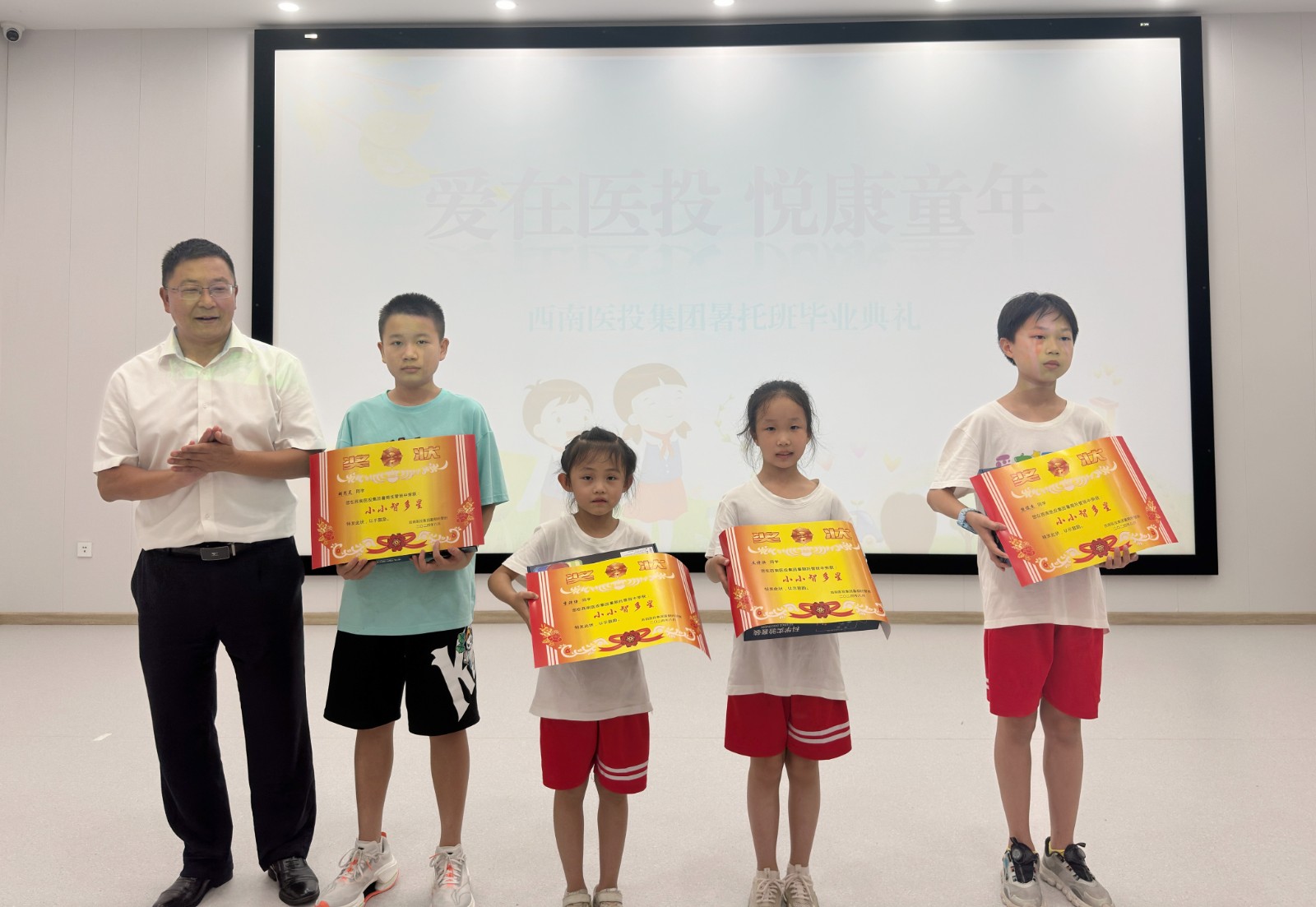 8月2日上午,西南醫(yī)投集團“愛在醫(yī)投 悅康童年”第一期暑期托管班畢業(yè)典禮在春江酒城嘉苑營銷大廳舉行。