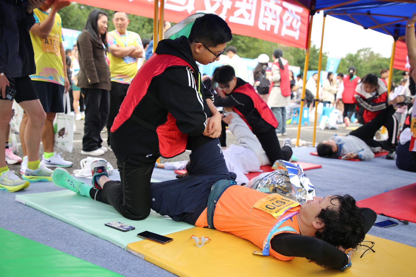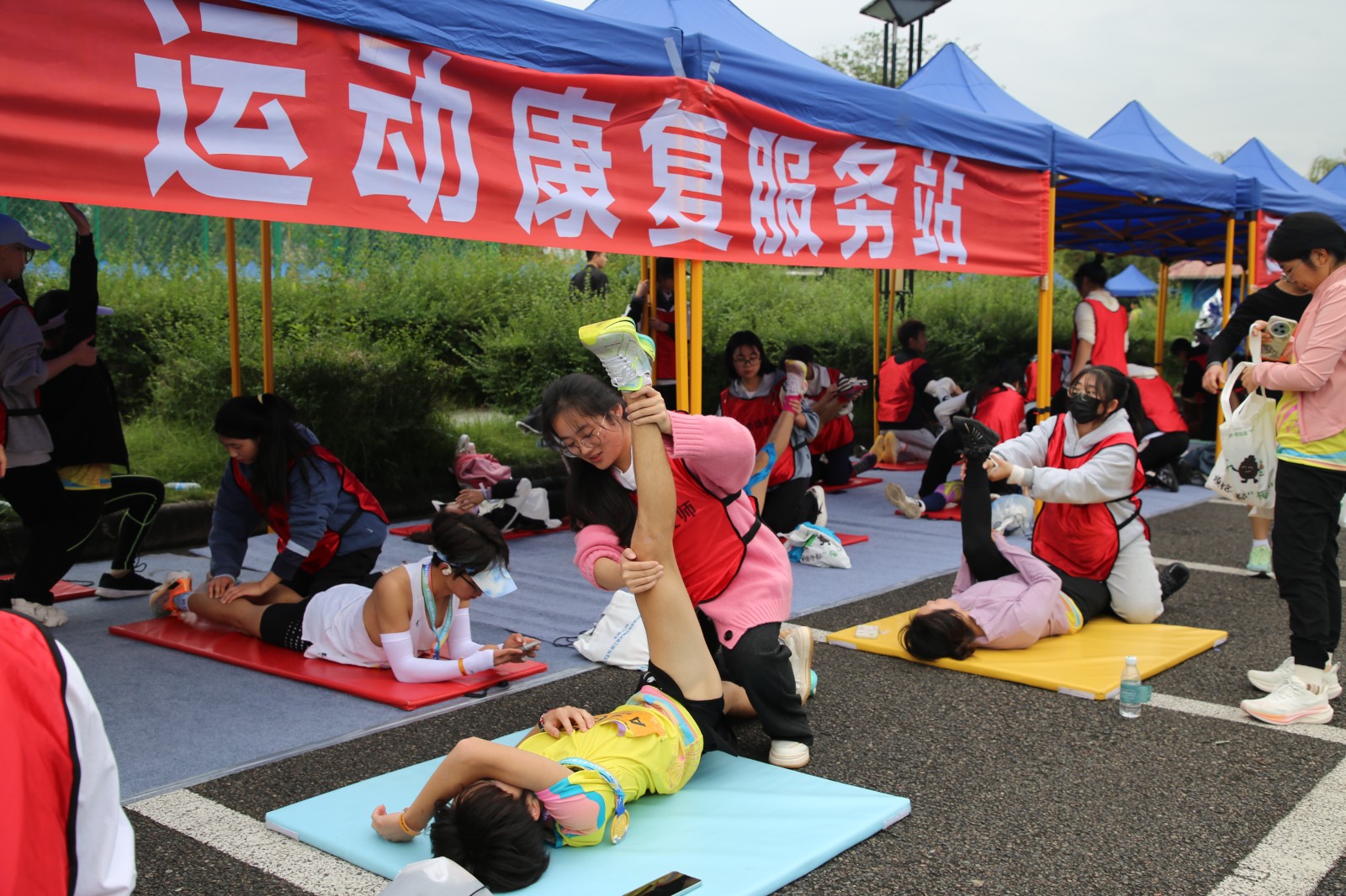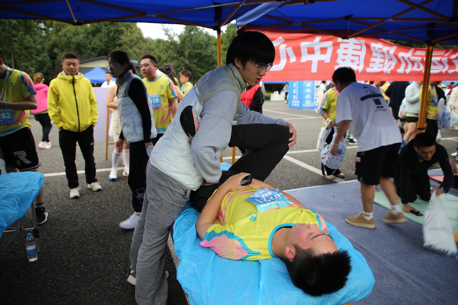 比賽前夕,運(yùn)動(dòng)健康中心提前布置現(xiàn)場,科學(xué)設(shè)置肌貼區(qū)、自由拉伸區(qū)、運(yùn)動(dòng)損傷康復(fù)區(qū)三個(gè)區(qū)域,時(shí)刻準(zhǔn)備為參賽選手提供貼心服務(wù)。比賽階段,運(yùn)動(dòng)健康中心全程關(guān)注賽場狀況,第一時(shí)間為有需要的選手提供即時(shí)幫助與服務(wù)。其專業(yè)的指導(dǎo)與賽場服務(wù)得到了參賽選手的一致好評。此次馬拉松賽運(yùn)動(dòng)健康中心派出專業(yè)運(yùn)動(dòng)康復(fù)師6名,專業(yè)教練5名,志愿者30余名,提供賽前肌貼、賽后拉伸、疼痛評估及康復(fù)服務(wù)等服務(wù)共計(jì)1500余人次。